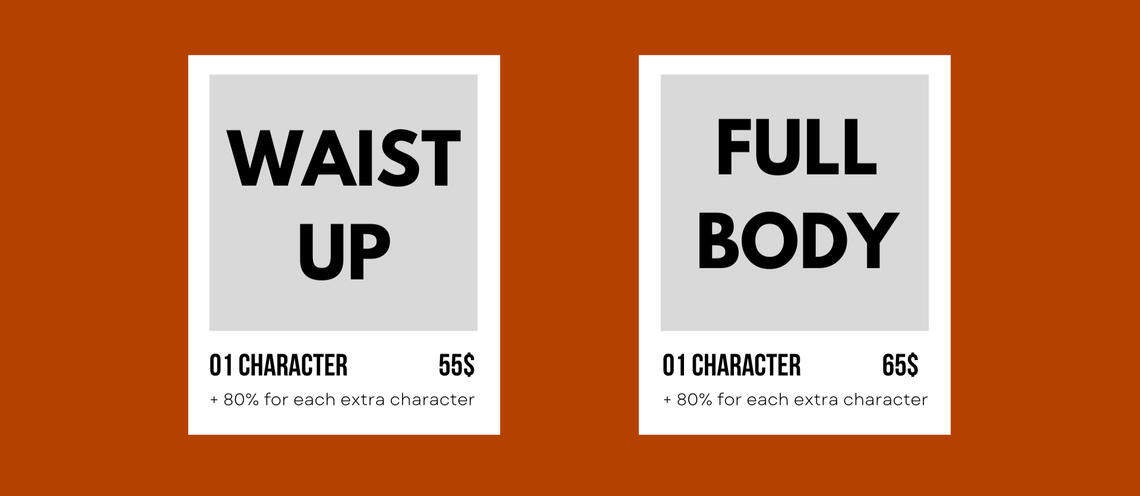 ‣ With BG: the price can be discussed based on the complexity of the background.